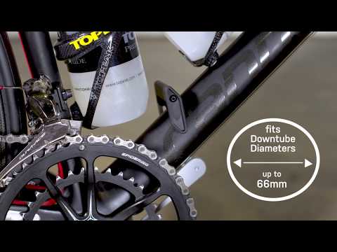 The ultimate portable tune-up stand slips easily under the bottom bracket while the hook holds the down tube securely for display, storage and maintenance.